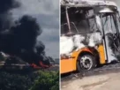Incêndio atinge garagem e destrói cinco ônibus na Região Metropolitana de Salvador
